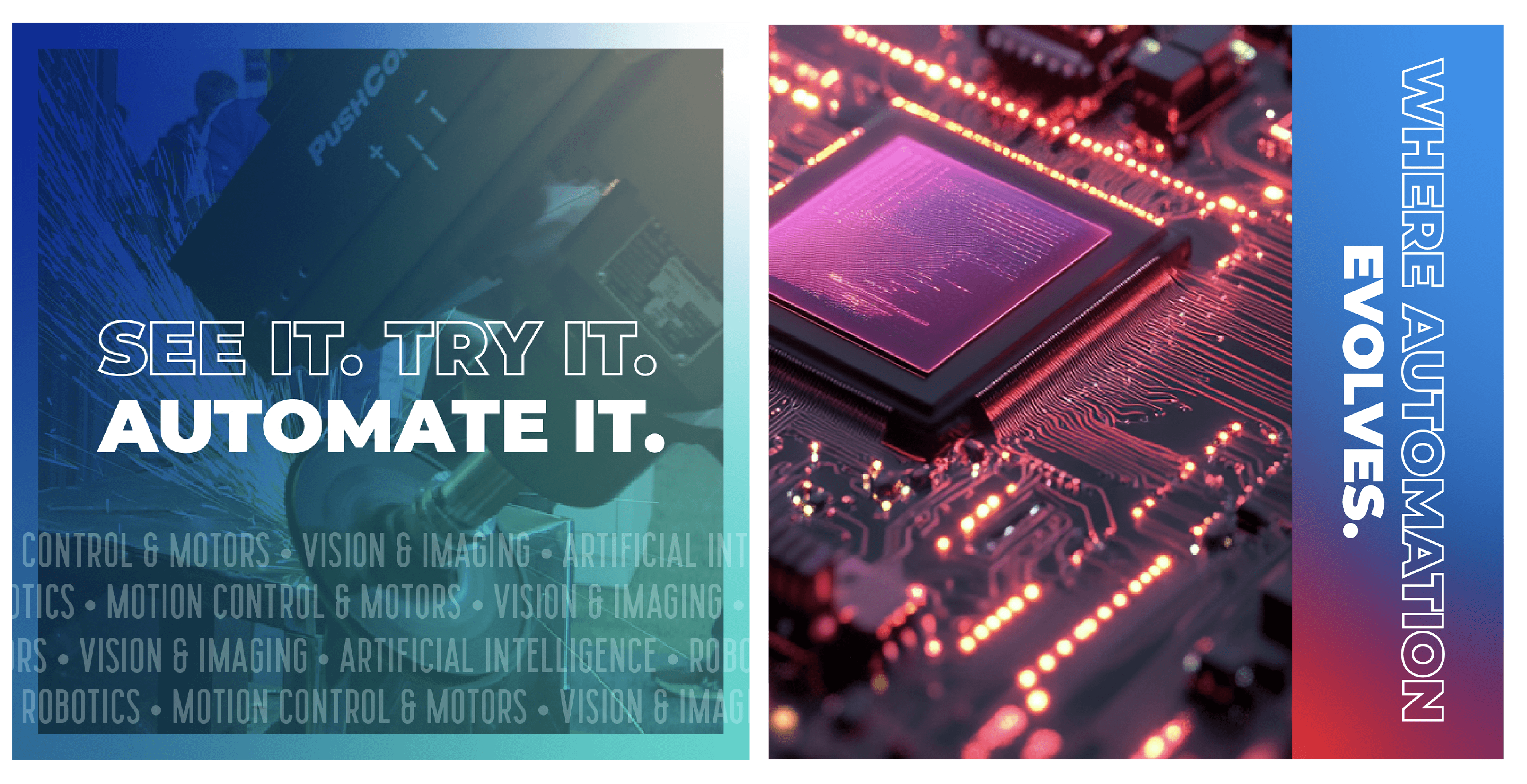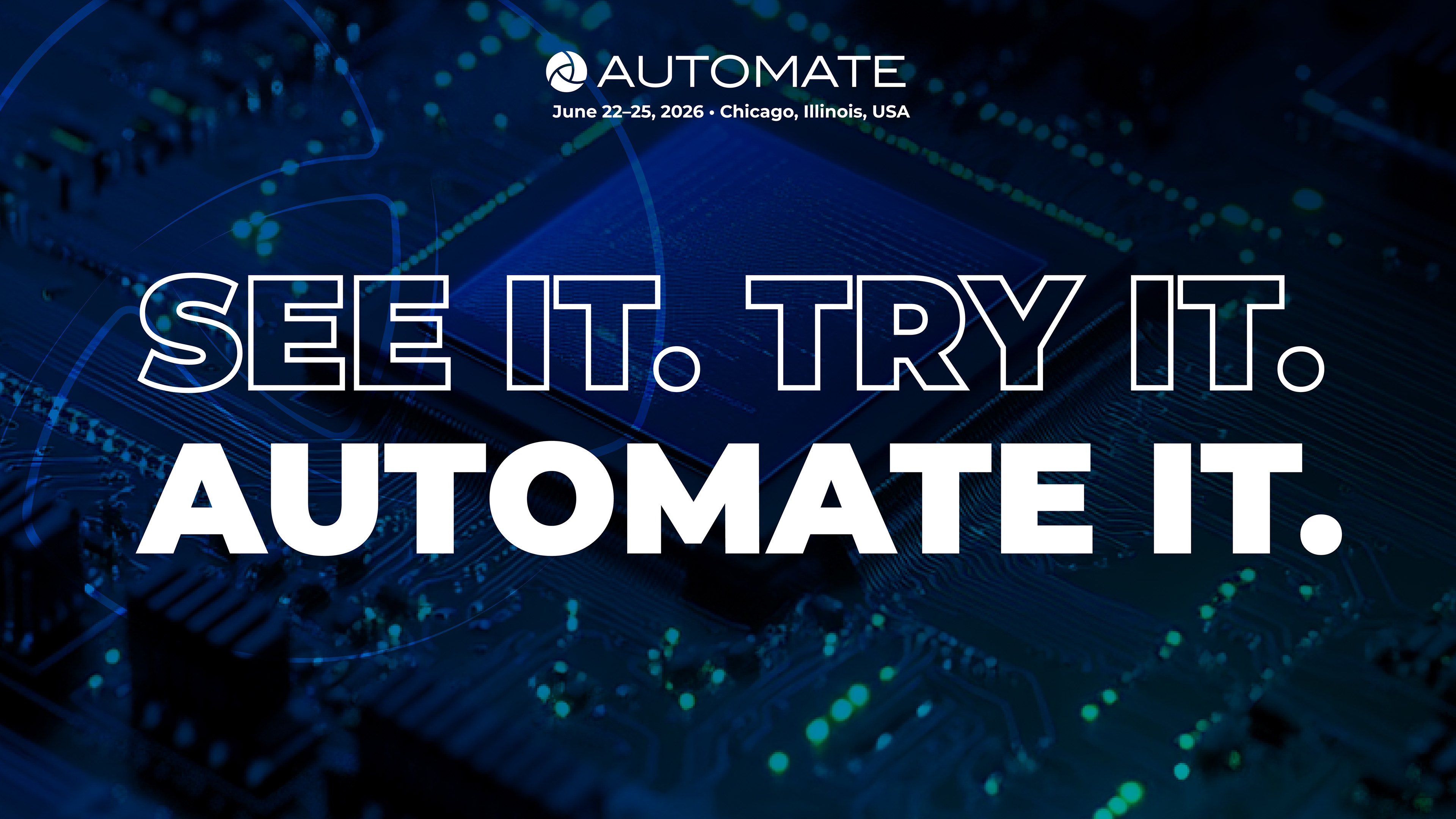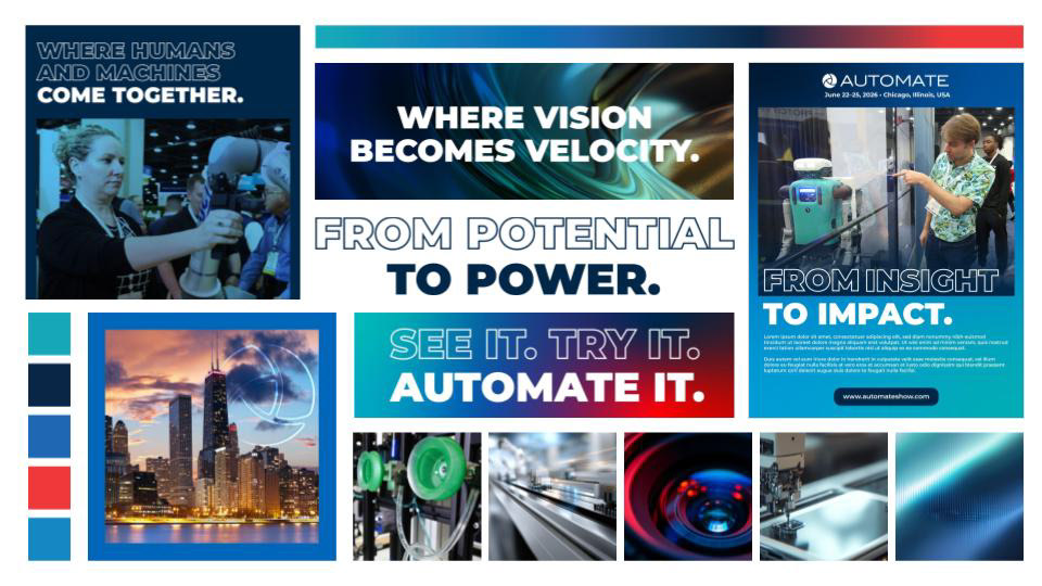Automate is a trade show held by A3, the Association for Advancing Automation. After working with the show as a client for 2022, they wanted to evolve the look and feel slightly while using familiar creative elements because of the back to back nature of the show.